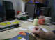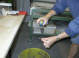 Zu Beginn wird eine Trägerscheibe zugeschnitten. Anschließend schneidet man die farbigen Gläser nach der Entwurfsvorlage zurecht. Wenn der Zuschnitt fertig ist, dann müssen sämtliche Glasstücken gereinigt werden, denn Schmutz und Fingerabdrücke brennen sich ein. Jetzt werden die gereinigten Glasstücken auf der Trägerscheibe aufgelegt und nach der Entwurfsvorlage ausgerichtet. In einem speziellen Glasbrennofen werden die Stücke bei 840°C zusammengeschmolzen d.h. gefuset.