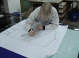 Dies Standbild ist einem Runenstein nachempfunden, welcher auf Gotland/Schweden sich befindet. Als Glas wurde ein Echtantikglas als Doppelüberfang (dieses Glas besteht aus drei Farbschichten) verwendet. Die fünf Mittelscheiben wurden mit Hilfe von Klebefolie, Blaupapier und den Bildteilstücken auf die Scheibe übertragen und anschließend wurden die Flächen herausgeschnitten, die weiß werden sollten durch das Sandstrahlen. Die Glasstücke im Schmuckbandgeflecht wurden alle sandgestrahlt. Im Flechtverfahren wurden dann die einzelnen Glasstücke mit Bleiruten zusammengefügt und anschließend die Kreuzungspunkte verlötet.